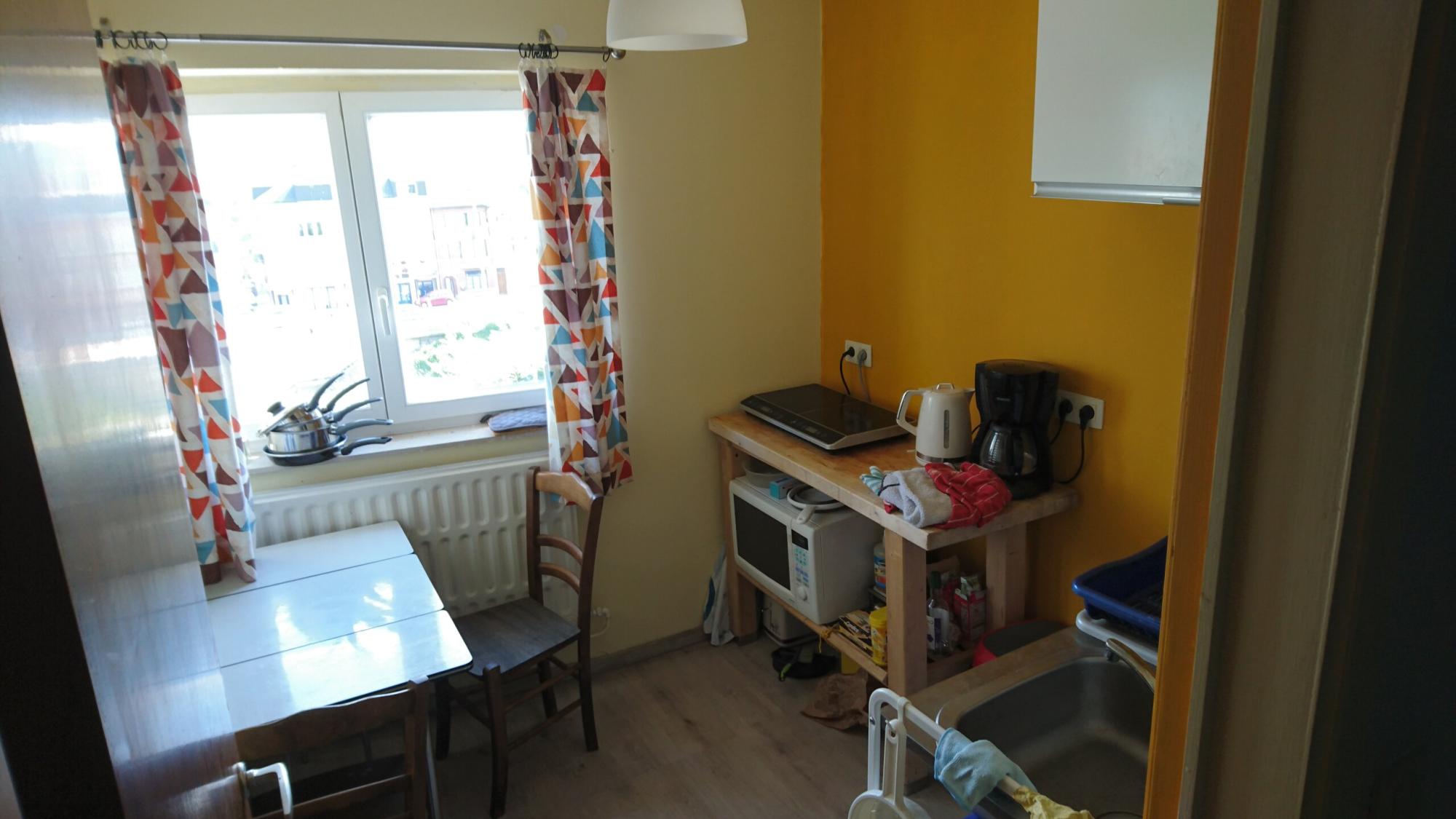1 Kot meublé, une cuisine équipée, une salle de bain et un WC séparé.