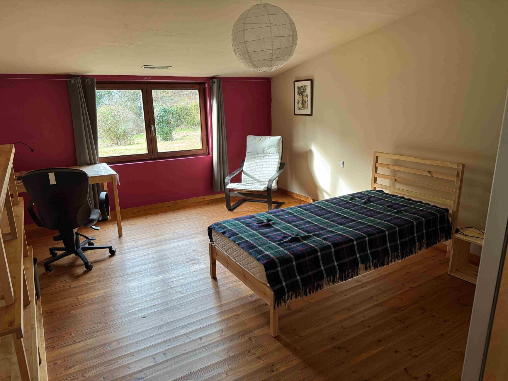 Chambre spacieuse et lumineuse, avec vue sur le jardin, située dans une grande maison calme à la campagne, avec parking.
