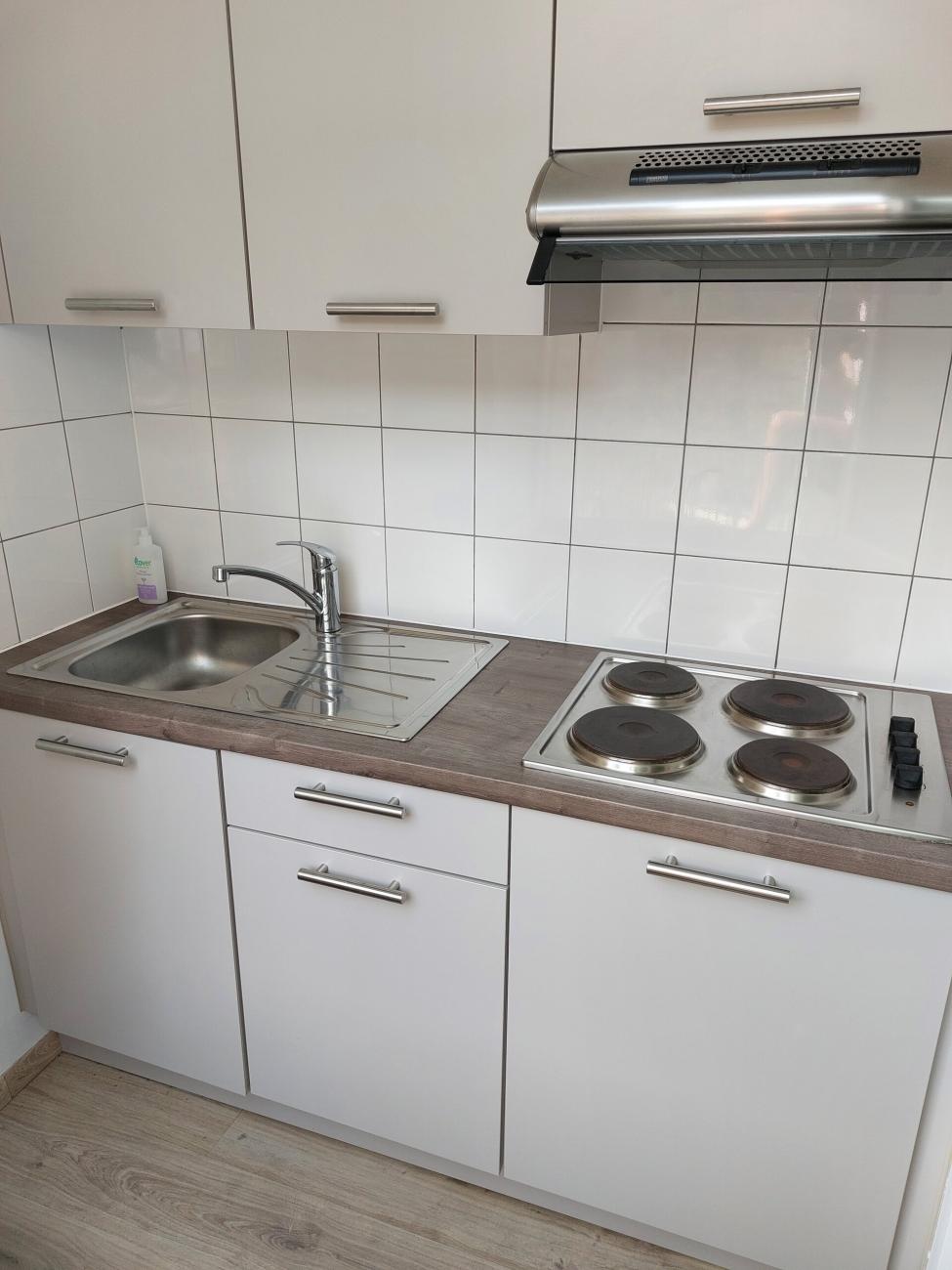 Studio de 26m², idéal pour étudiant, entièrement rénové et très lumineux, séjour avec cuisine équipée, frigo et mico-ondes, salle de bain avec douche et W. C. avec lavabo à part.