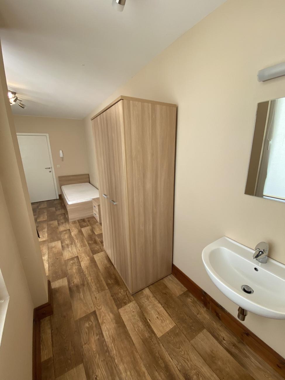 Communs: salon (TV écran plat, canapé), cuisine (2 frigos, 2 congélateurs , 3 micro-ondes, four, lave-vaisselle, 2 taques vitro), 4 douches et 3 WC pour les 10 étudiantes. Internet inclus. Nettoyage des communs 1x/ semaine
