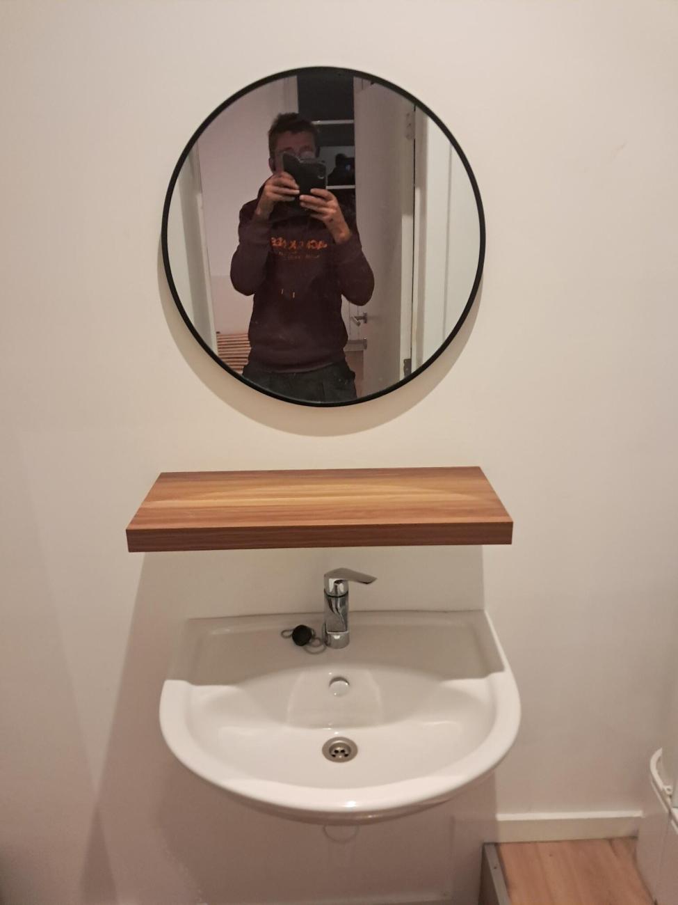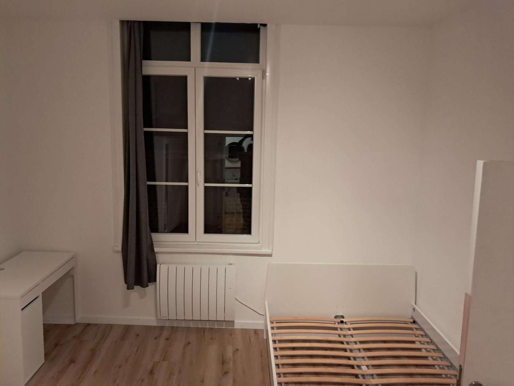 Meublé : lit, bureau, armoire avec miroir, rideaux