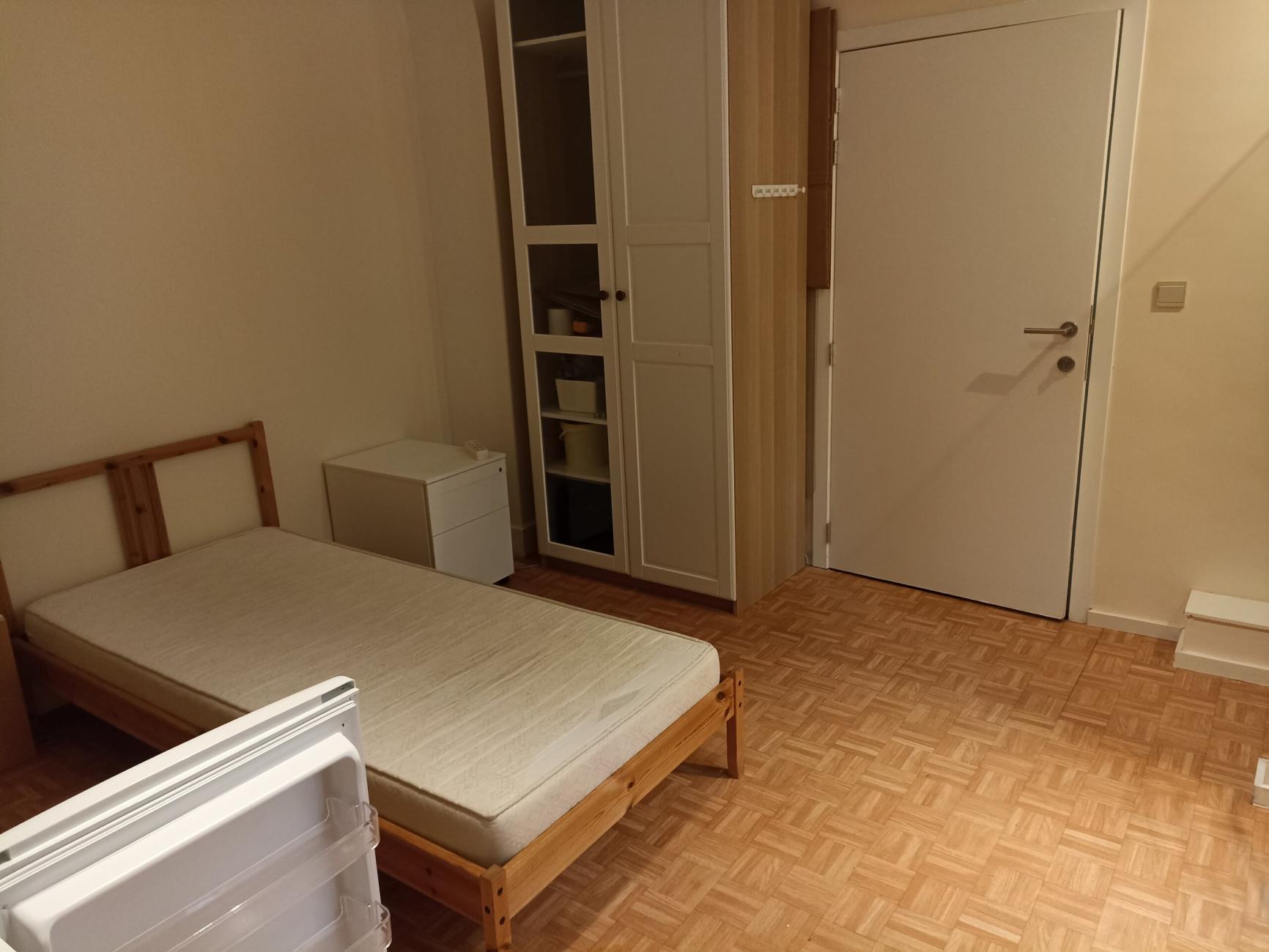 à droite, la table de bureau, le lit de 90 qui peut être changé en 140 et l'armoire (non vue sur cette photo mais vue sur la video)