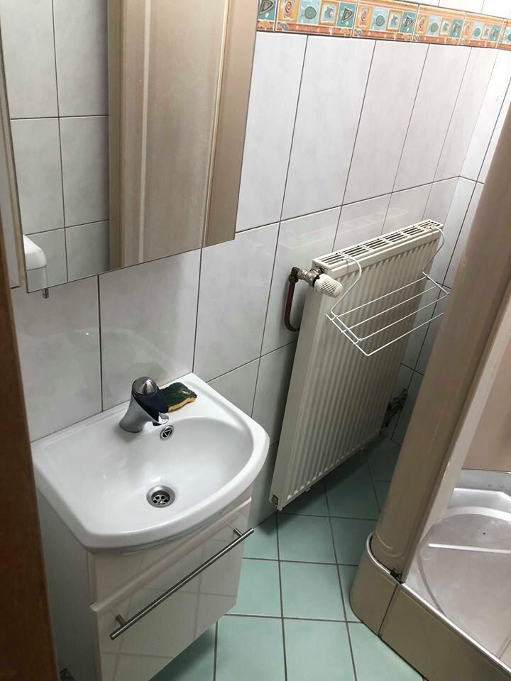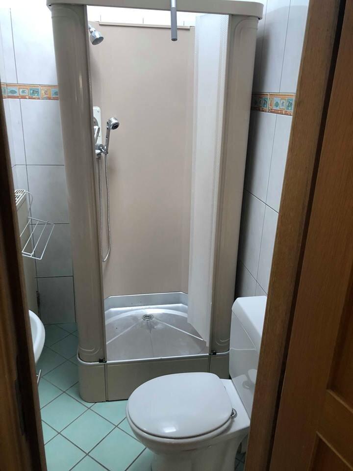 🛁Sdb privative (cabine de douche) avec un wc, lavabo et meuble, miroir.