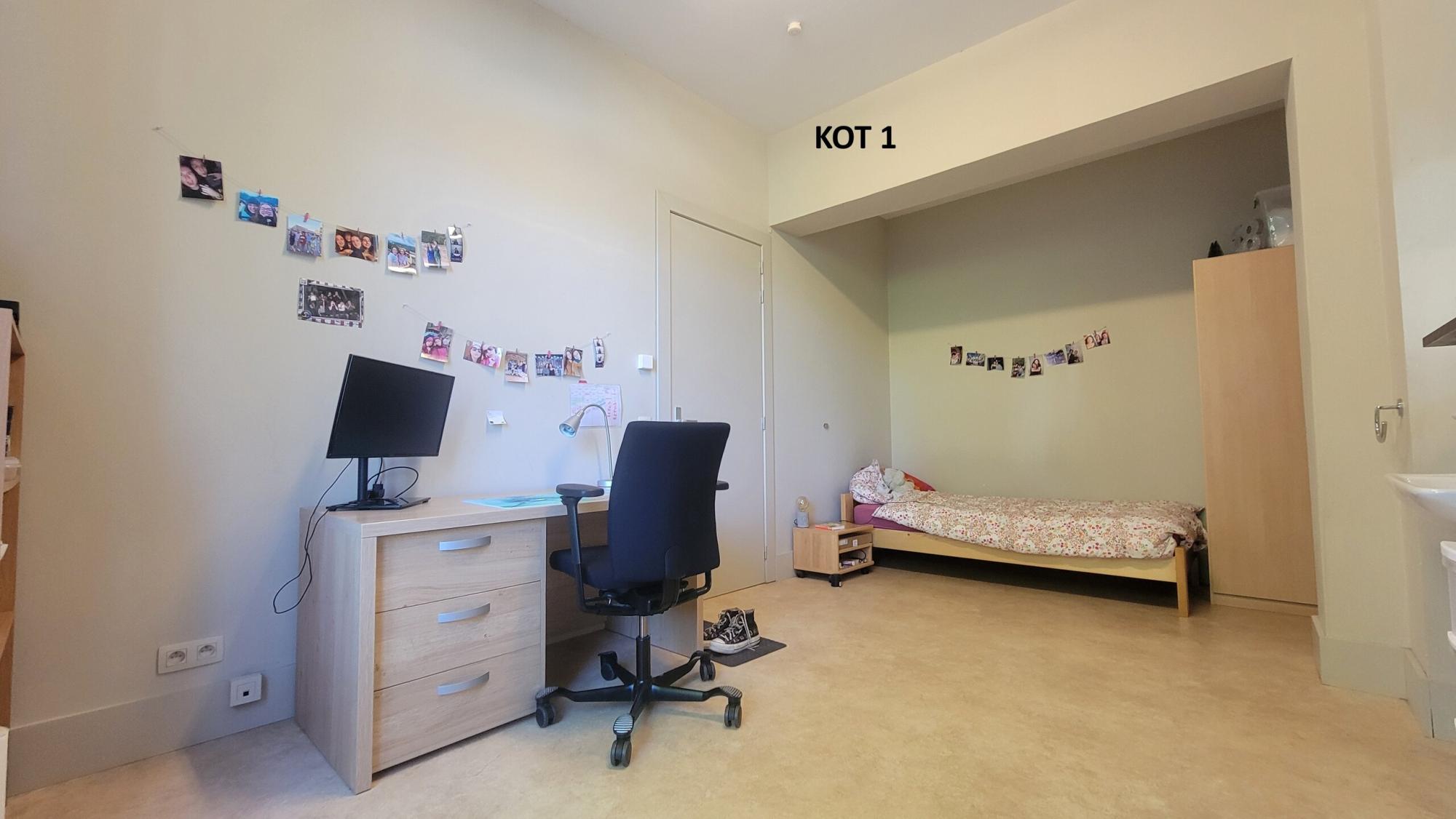 3 kots meublés pour étudiantes partageant 2 salles de bain et 2 WC et une cuisine commune équipée. L'immeuble comporte 5 kots (1, 2, 4, 5 et 6)