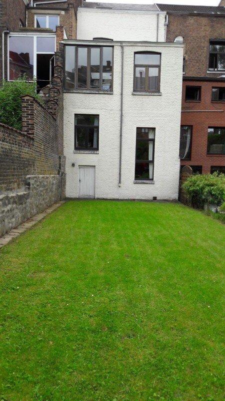 Chambre lumineuse avec vue sur le jardin pour étudiant(e) dans un immeuble avec cuisine entièrement équipée (plaques vitrocéramiques, lave-vaisselle, 3 frigos, ... ) et grande pièce commune.