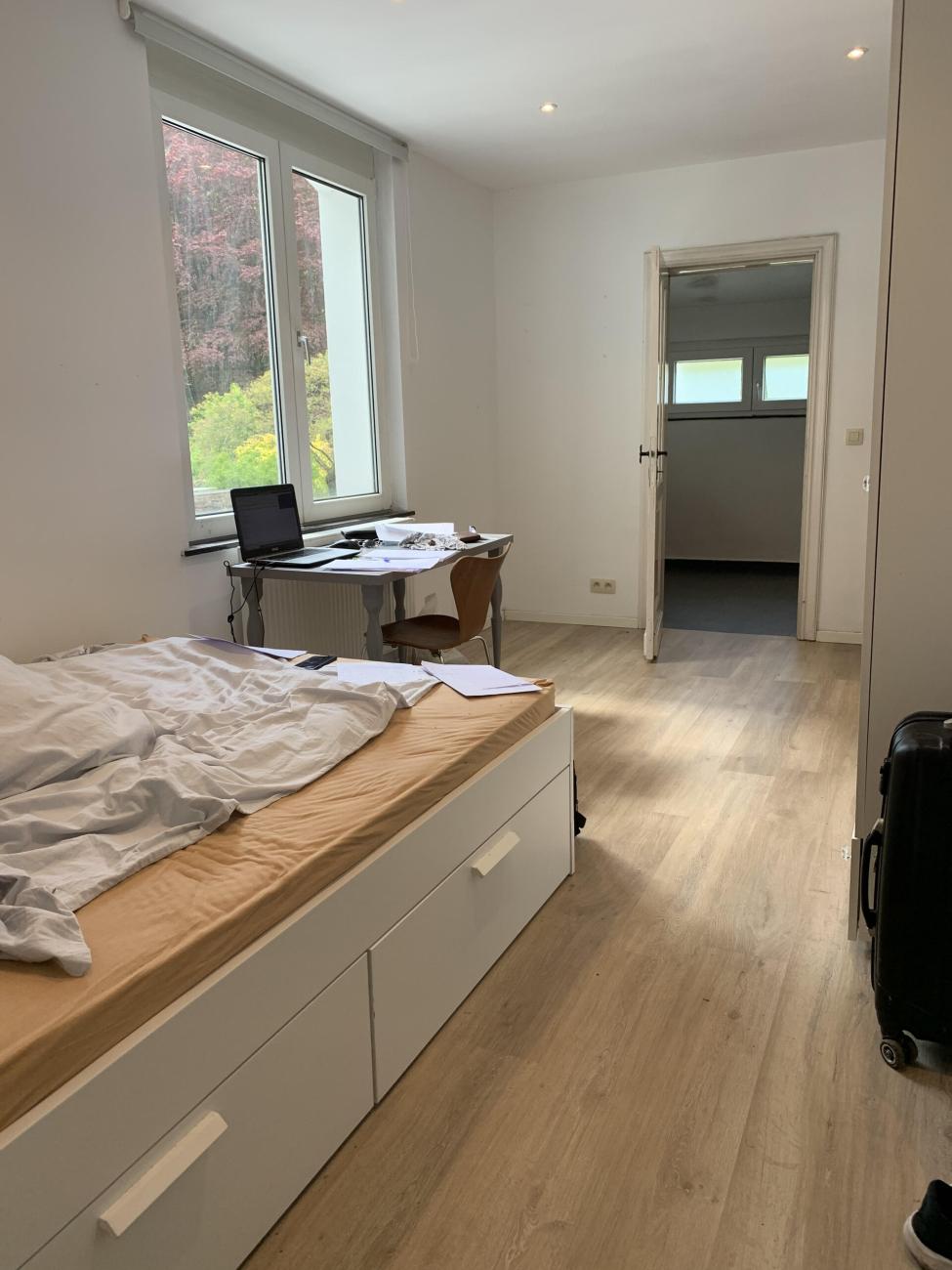 • Superficie de +/- 20 m², meublée : lit double, bureau, garde-robe,