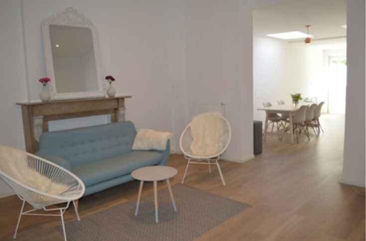 • Grande cuisine équipée au rez + salon living room + grand beau jardin