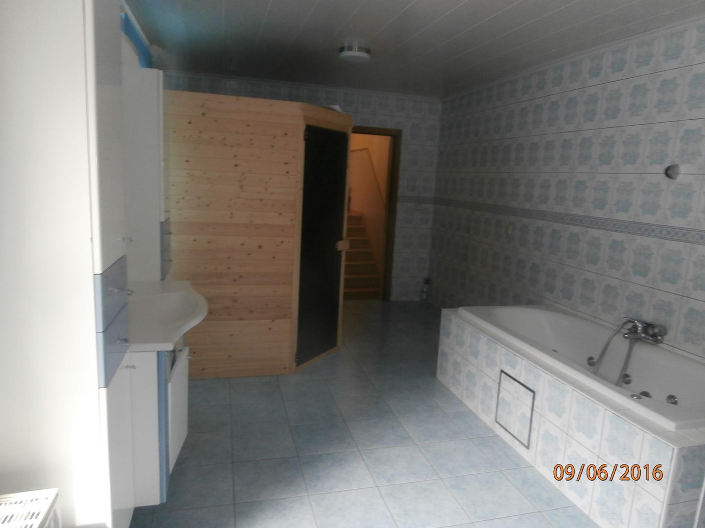 Bain à bulles, douche, lavabo, wc, sauna 3 personnes