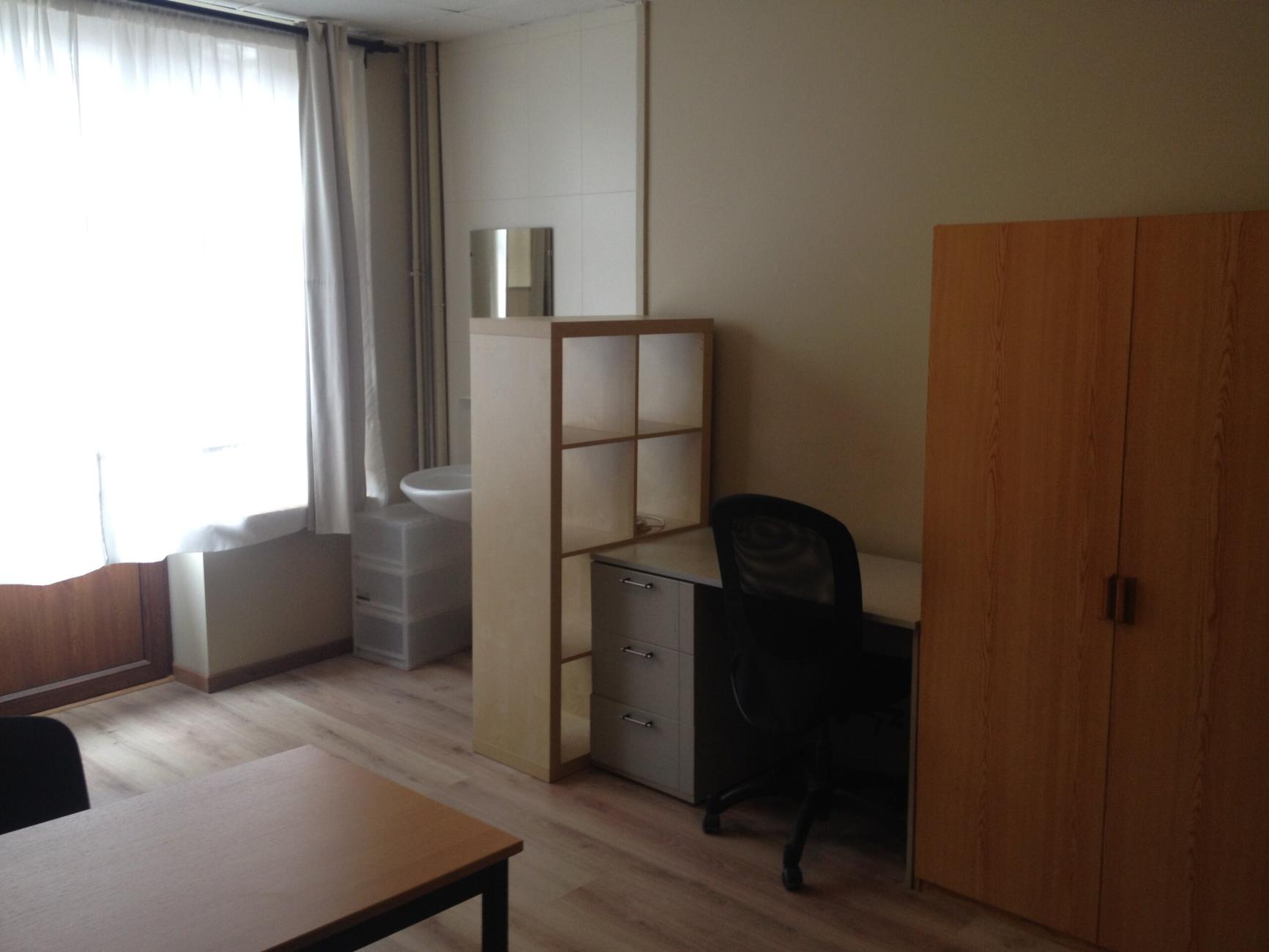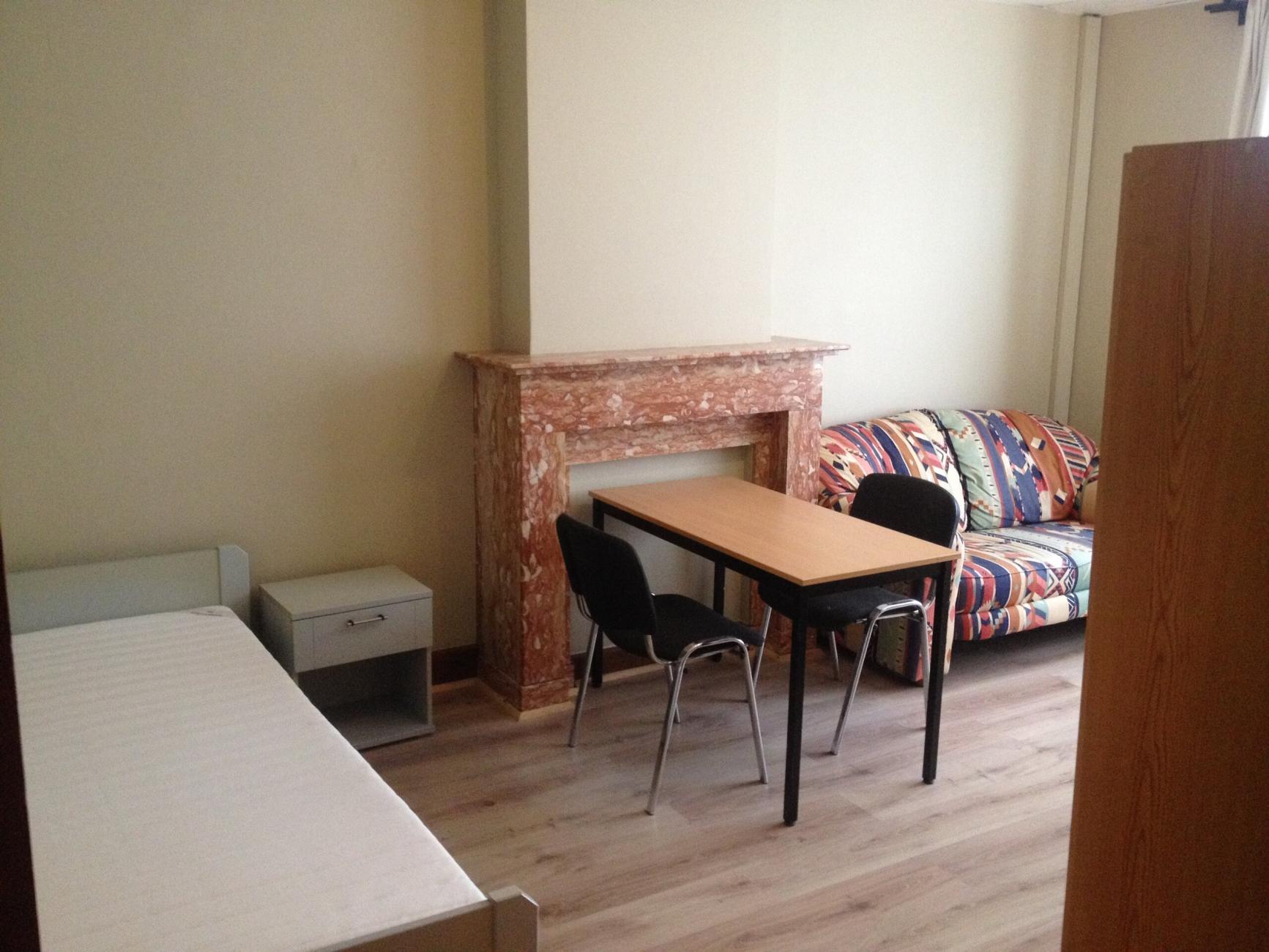 Kot à 2 min des facs et de le gare. Entièrement rénové, meublé ( avec lit et matelas, garde-robe, bureau, chaise de bureau) , cuisine et sdd ( lavabo, toilette, douche ) commune pour 4 personnes.