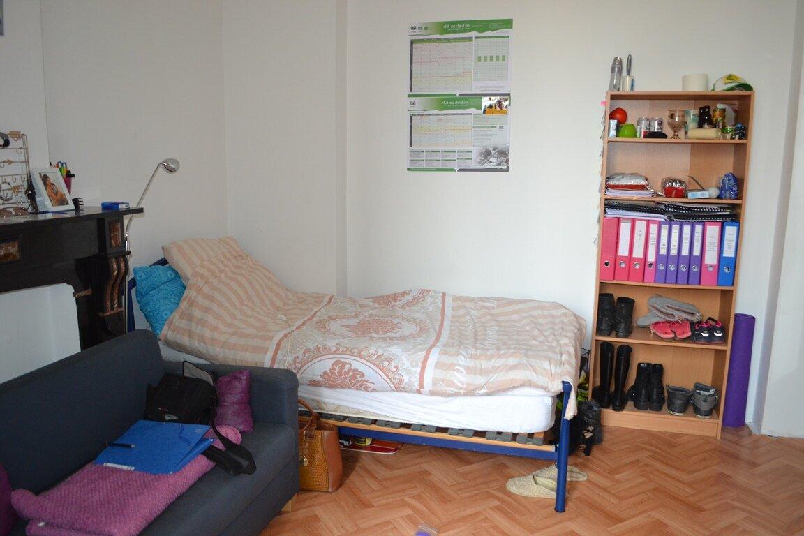 1 kot dispo dans un bâtiment de 8 kots, avec 2 cuisines, 3 douches et une belle terrasse.