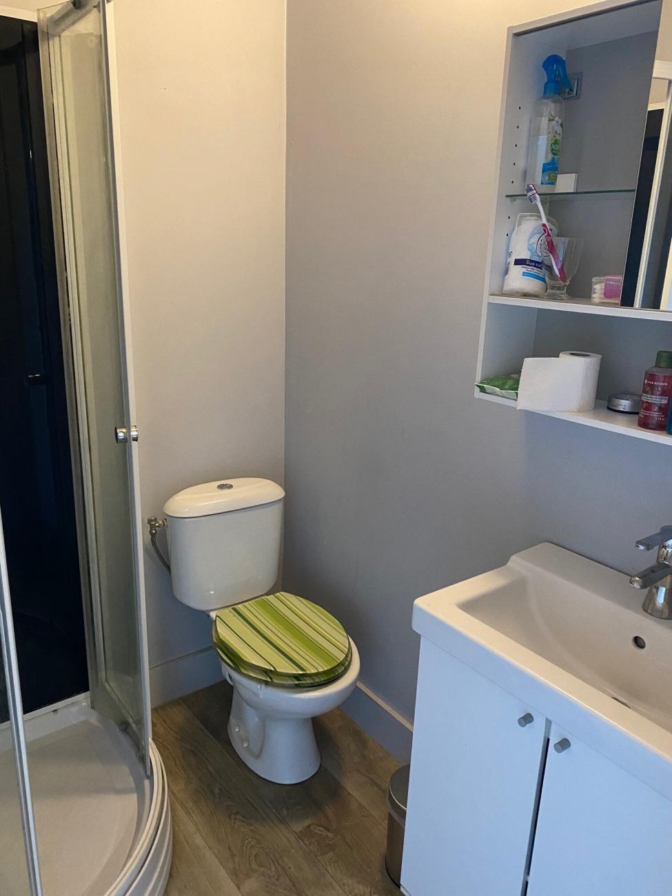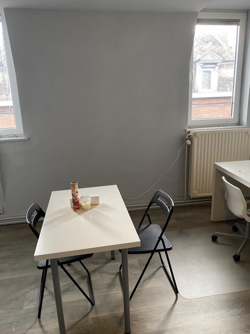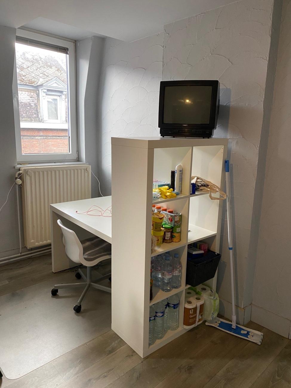 Logement entièrement privatif comprenant kitchenette, table et chaises, 1 bureau avec chaise de bureau, salle de douche privative avec WC, 1 lit (sans matelas), 1 garde robe, parlophone, internet câblé par réseau sécurisé en option.